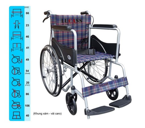 Khung sắt sơn tĩnh điện, vải caro, có thắng tay cho người đẩy, có dây đai an toàn.